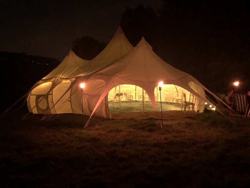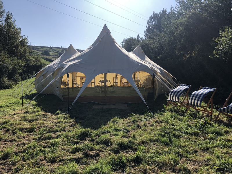 This elegant, stunning and unique event tent is more than enough room for up to 50 guests seated for a wedding, an intamate party or private dining experience, with its unique structure and canvas were able to open up all the sides tand bring the outside in.